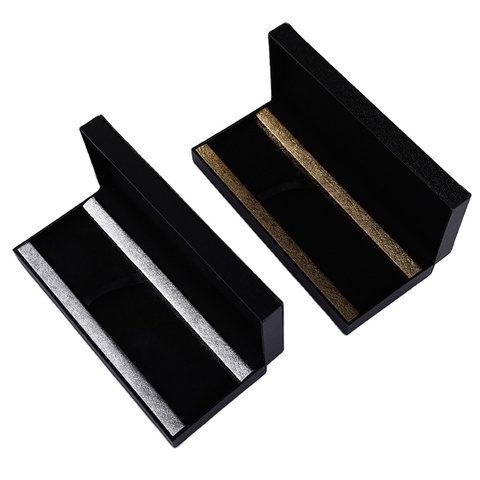 ハイエンドブラックビジネスギフトボックスOEMロゴゴールドとシルバーエッジファウンテンペン収納ボックスフリップカバーペン包装箱収納ボックス