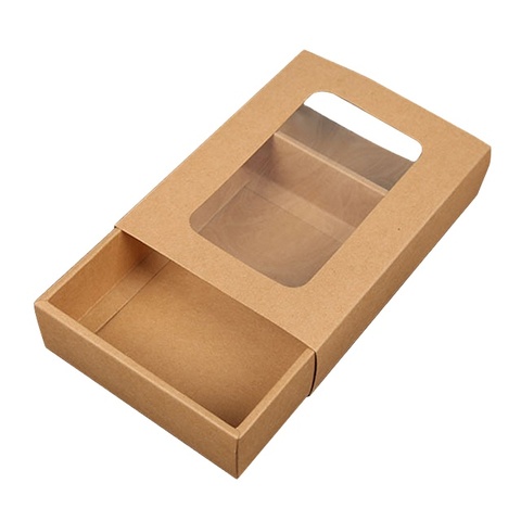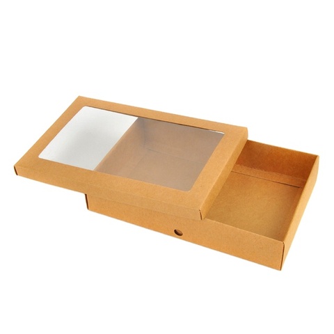 Effen Kleur Papieren Doos Doorzichtig Venster Kraft Verpakking Custom Ontwerp Geschenkdoos
